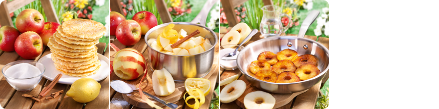Reibekuchen mit karamellisierten Apfelscheiben und Apfelmus